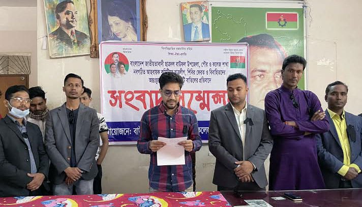 বিএনপি দলীয় সাবেক সাংসদ সহিদুল আলম তালুকদারের বাসভবনে আয়োজিত সংবাদ সম্মেলনে উপজেলা ছাত্রদলের নবগঠিত আহ্বায়ক কমিটির যুগ্ম আহবায়ক তৌসিফুর রহমান রাফা বলেন, ‘দীর্ঘ সতের বছর পর গত ২৭ ডিসেম্বর বাউফল উপজেলা ও পৌর ছাত্রদলের আলাদা দুটি ২১ সদস্য বিশিষ্ট আহ্বায়ক কমিটি ঘোষণা করা হয়। উপজেলা ছাত্রদলের আহ্বায়ক কমিটির আহ্বায়ক মুজাহিদুল ইসলাম ২০০৯ সালে পটুয়াখালী পলিটেকনিক কলেজের ছাত্রলীগের ধর্ম বিষয়ক সম্পাদক ছিলেন। সদস্য সচিব মিজানুর রহমান মিজান বিবাহিত। উপজেলা আহ্বায়ক কমিটির ৬ নম্বর যুগ্ম আহবায়ক মো. সুজন মল্লিক বিবাহিত ও এক সন্তানের জনক। এ ছাড়া ১৩ নম্বর যুগ্ম আহ্বায়ক ফয়সাল হোসেন তার ভাই।’