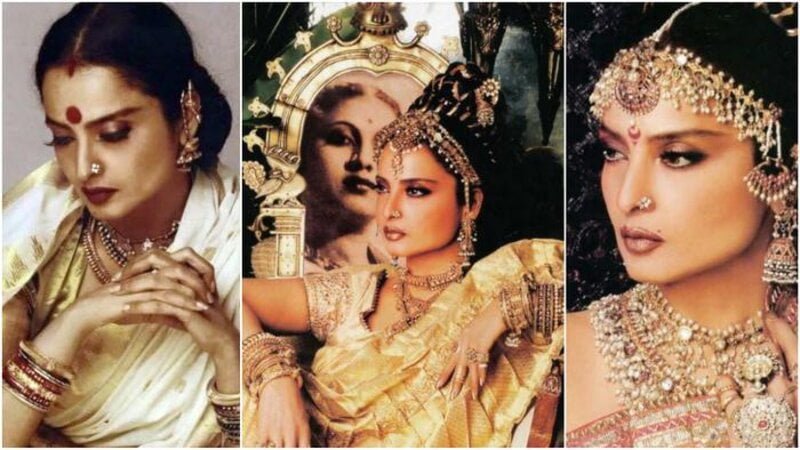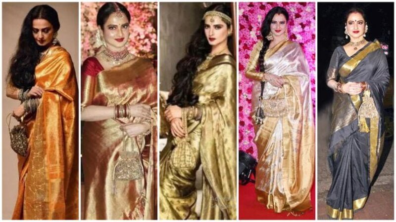 ** ক্যারিয়ারের শুরুতে স্যুট, শাড়ি ও গাউন পরতেন রেখা। পরে সোনালি কানজিভরম শাড়িতে নতুন ট্রেন্ড তৈরি করেন।