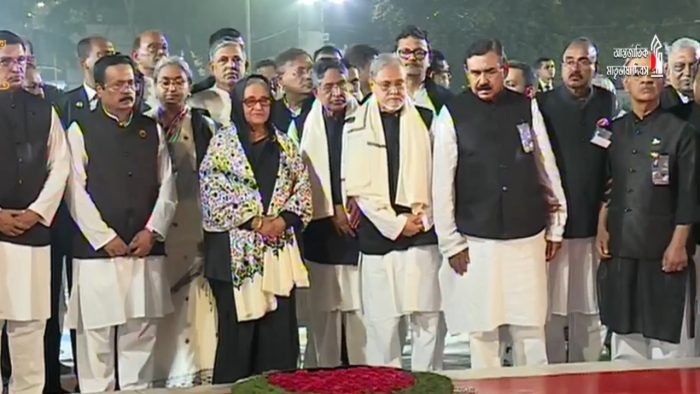 এর আগে রাত ১১টা ৫১ মিনিটে প্রধানমন্ত্রী শহীদ মিনারে এসে পৌঁছলে তাকে অভ্যর্থনা জানান ঢাকা বিশ্ববিদ্যালয়ের উপাচার্য অধ্যাপক ড. এ এস এম মাকসুদ কামাল।