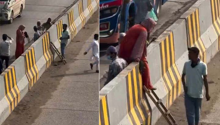 ৫ টাকায় মইয়ে ডিভাইডার পার, ভিডিও ভাইরাল