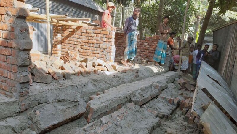 বৃদ্ধার একমাত্র মেয়ে রাশেদা বলেন, বালু বেশি দিয়ে কাজ করাতেই ঘরটি ভেঙে পড়েছে। একই এলাকায় আনোয়ারা বেগমের নির্মাণাধীন ঘরের বারান্দার দেয়ালও ভেঙে পড়েছে।
