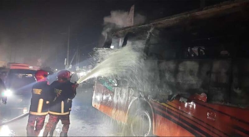 ব্রাহ্মণবাড়িয়ায় যাত্রীবাহী চলন্ত বাসে আগুন