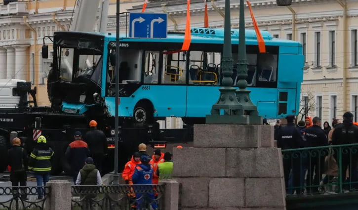 রুশ তদন্তকারী কমিটি জানিয়েছে, সেন্ট পিটার্সবার্গে বাস দুর্ঘটনায় ৭ জন নিহত হয়েছেন। এছাড়া আহত হয়েছে ছয় জন। ওই বাসে ২০ জনের মতো যাত্রী ছিল। সেতু ভেঙে বাসটি নদীতে পড়ে যাওয়ার পরই ডুবে যায়। এরপরই উদ্ধারকর্মীরা এটিকে উদ্ধারের জন্য চেষ্টা চালায়। ওই সেতুর পাশে উদ্ধারকারীদের নৌকা এবং অ্যাম্বুলেন্স দাঁড়িয়ে থাকতে দেখা গেছে।