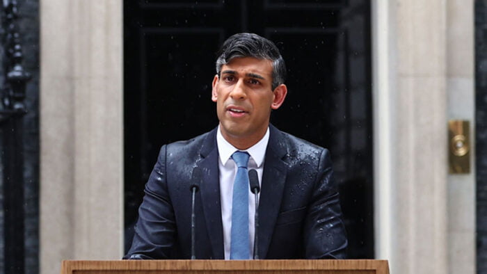 স্থানীয় সময় গত ২২ মে বিকেলে লন্ডনের ১০ নম্বর ডাউনিং স্ট্রিটের সামনে হাজির হয়ে আগাম নির্বাচনের ঘোষণা দেন দেশটির প্রধানমন্ত্রী ঋষি সুনাক।