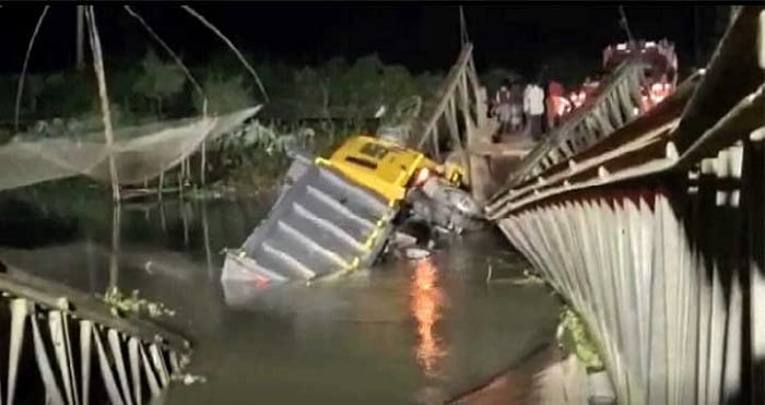 সেতু ভেঙে ট্রাক নদীতে, যান চলাচল বন্ধ