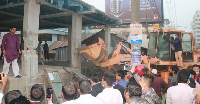 অবশেষে সোমবার (১১ জানুয়ারি) বিকেলে সিটি করপোরেশন কর্তৃপক্ষ সেখানে অভিযান চালিয়ে নির্মানাধীন ভবনের অবৈধ ওই অংশ বুলডোজার দিয়ে গুঁড়িয়ে দিয়েছে।
