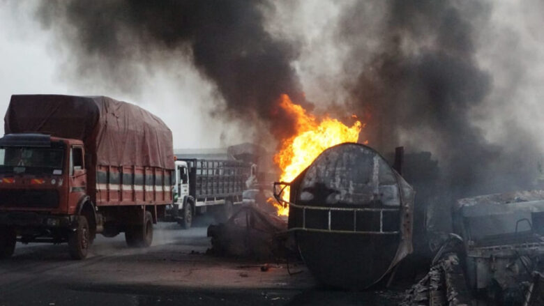 জ্বালানির যে ট্রাকটি বিস্ফোরিত হয়েছে সেটির সঙ্গে আরেকটি ট্রাকের সংঘর্ষ হয়। এরপরই এটিতে বোমার মতো বিস্ফোরণ ঘটে।