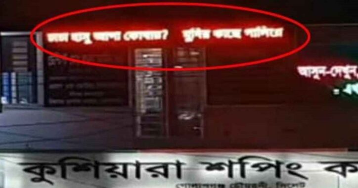 গোলাপগঞ্জ থানার ওসি মনিরুজ্জামান মোল্লা বলেন, মার্কেটের সাইনবোর্ডে এমন লেখা ভেসে ওঠার খবর পেয়ে পুলিশ ঘটনাস্থলে যায়। তখন মার্কেটটি বন্ধ পাওয়া গেছে।