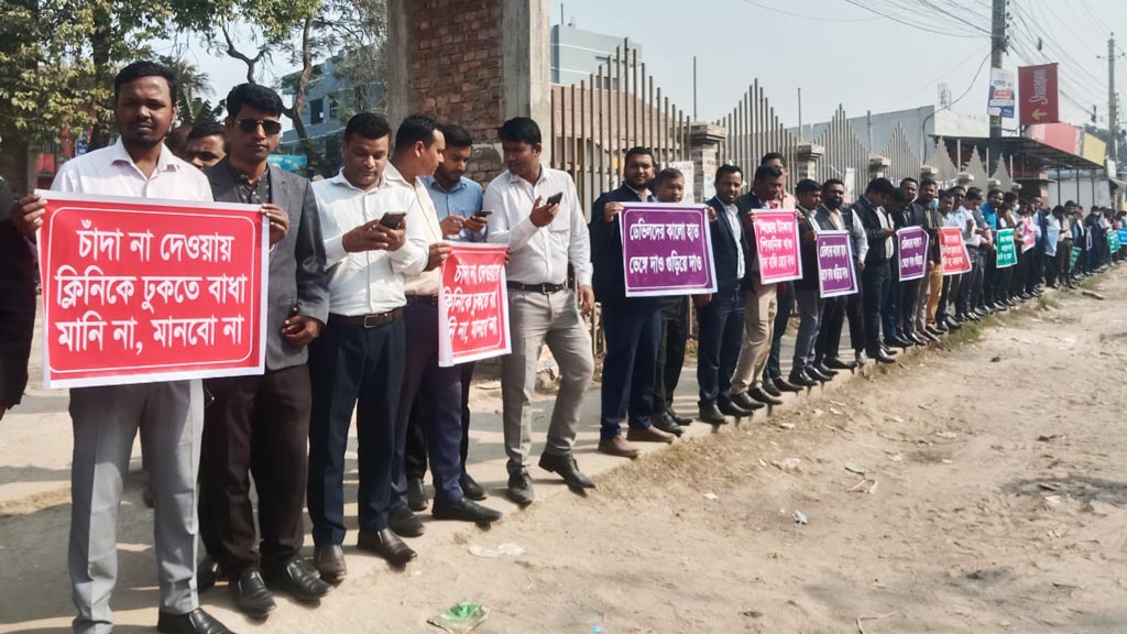 চাঁদা বন্ধের দাবিতে গাইবান্ধায় মেডিকেল রিপ্রেজেন্টেটিভদের মানববন্ধন