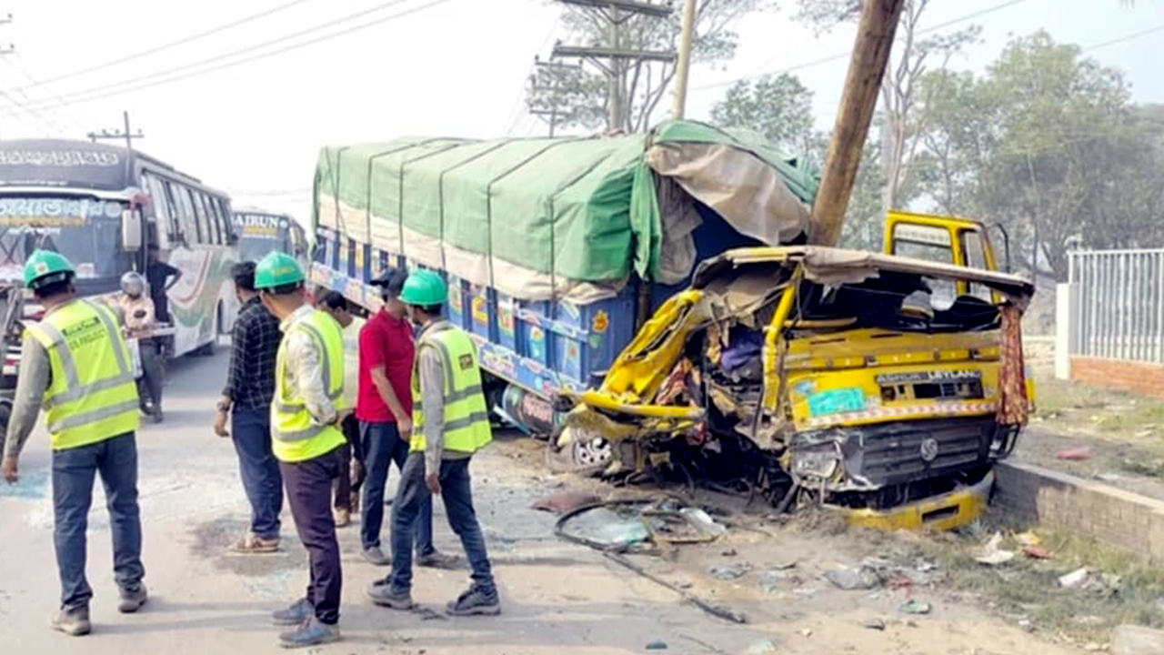 নরসিংদীতে বাস-ট্রাক-প্রাইভেটকারের ত্রিমুখী সংঘর্ষ, আহত ৬৩