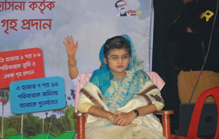 গত শনিবার (২৩ জানুয়ারি) সাতক্ষীরা জেলা শিল্পকলা একাডেমিতে ভূমিহীন ও গৃহহীনদের মাঝে গৃহ বিতরণ উদ্বোধনী অনুষ্ঠানে স্থানীয় প্রশাসনের আমন্ত্রণে শিশু প্রধানমন্ত্রী শেখ হাসিনা সেজে অনুষ্ঠানে আসন গ্রহণ করেন শিশু আবৃত্তিশিল্পী সাফানা ফারদিন দিঘী। অবিকল সাজে সেজেছিল শিশু শেখ হাসিনা। অনুষ্ঠানের শুরু থেকে শেষ পর্যন্ত মূলমঞ্চে চেয়ারে প্রধানমন্ত্রী শেখ হাসিনার ভঙ্গিমায় বসেছিল সাতক্ষীরার শিশু শেখ হাসিনা। অনুষ্ঠানে উপস্থিত সবার দৃষ্টি কাড়ে শিশু শেখ হাসিনা।