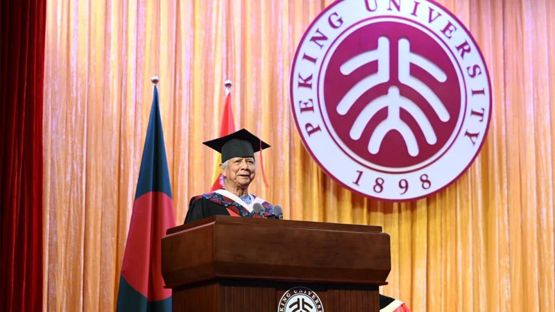 অনুষ্ঠানে প্রধান উপদেষ্টা অধ্যাপক ইউনূসকে পিকিং বিশ্ববিদ্যালয় থেকে সম্মানসূচক ডক্টরেট ডিগ্রি প্রদান করা হয়।