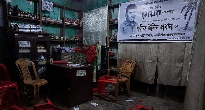 স্থানীয় বাসিন্দা ও প্রত্যক্ষদর্শী সুত্র জানায়, নির্বাচনী প্রচারণার শেষদিনে বৃহস্পতিবার (২৮ জানুয়ারি) দুপুরে আওয়ামী লীগের বিদ্রোহী (স্বতন্ত্র) প্রার্থী শরীফ উদ্দিন প্রধানের পক্ষে নির্বাচনী মিছিল ও সভা করে স্থানীয় নেতাকর্মীরা। পরে বিকেলে শহরের রফিকুল ইসলাম বকুল স্বাধীনতা চত্বরে আওয়ামী লীগ সমর্থিত নৌকার মেয়র প্রার্থী আলী মুর্তজা বিশ্বাস সনির পক্ষে নির্বাচনী পথসমাবেশ করে কেন্দ্রীয় ও স্থানীয় নেতৃবৃন্দ।