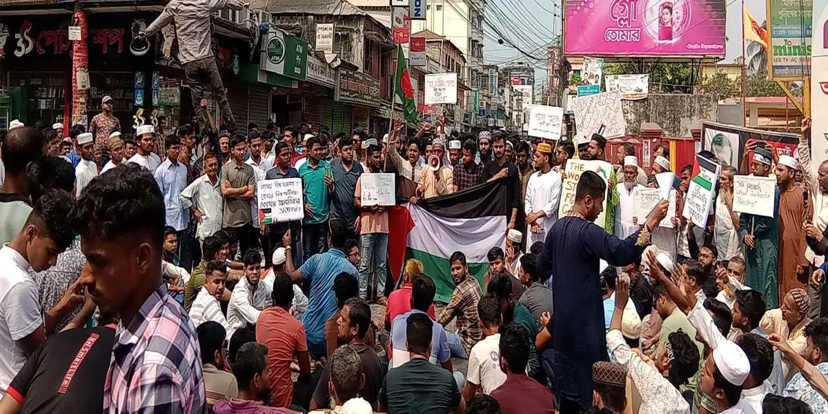 গাজায় হামলার প্রতিবাদে ঝালকাঠিতে তৌহিদি জনতার বিক্ষোভ