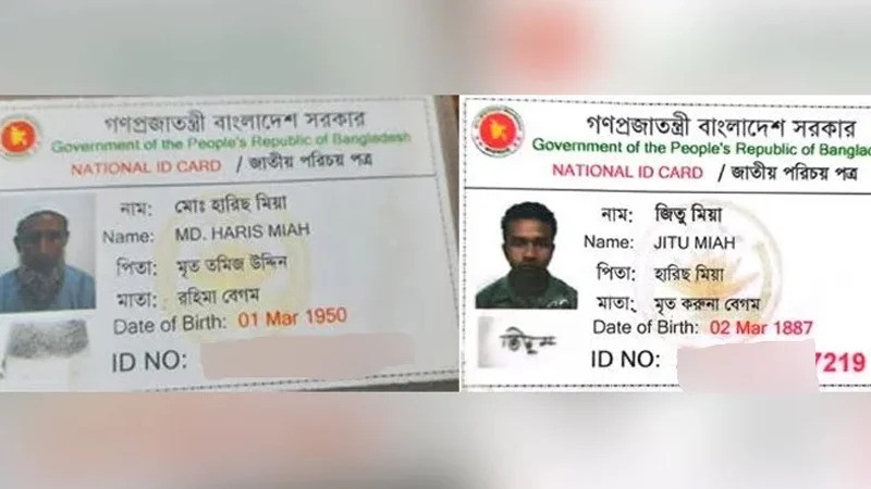জাতীয় পরিচয়পত্রে ছেলের বয়স ১৩৮ বছর, বাবার ৭৫