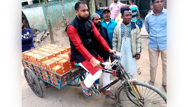 ভ্যান চালিয়ে মিষ্টি নিয়ে গেলেন নির্বাচিত কাউন্সিলর
