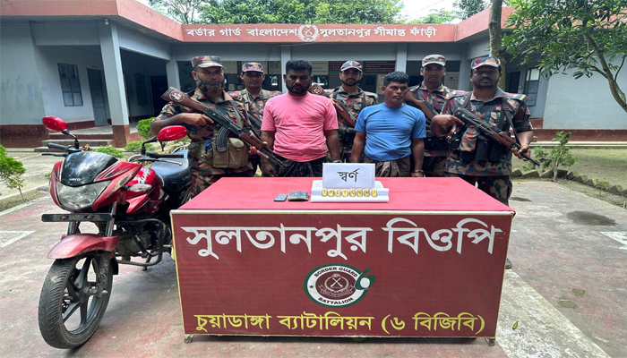 দর্শনা সীমান্তে ১ কোটি ৭২ লাখ টাকার স্বর্ণসহ দুই চোরাকারবারী আটক