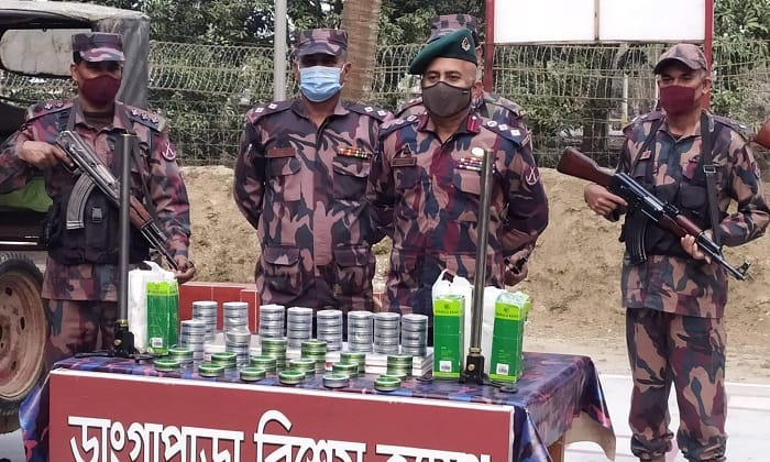 ডাঙ্গাপাড়া বিশেষ ক্যাম্প কমান্ডার তুহিন নন্দি বলেন, ভারত থেকে অবৈধভাবে এয়ার রাইফেলের গুলি নিয়ে বিরামপুরের দিকে যাবার পথে লোহাচড়া চেকপোস্ট এলাকায় একটি অটোরিক্সা থামিয়ে তল্লাশী করা হয়। এসময ওই অটোরিক্সায় তল্লাশি চালিয়ে চালকের আসনের নিচে অভিনব কায়দায় রাখা ৪০ হাজার পিস এয়ার রাইফেলের গুলি ও দুটি পিস্তল রাখার স্ট্যান্ড জব্দ করা হয়েছে ।