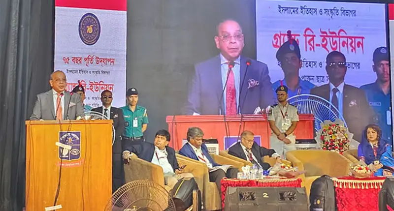 শনিবার (৮ নভেম্বর) ঢাকা বিশ্ববিদ্যালয়ের ইসলামের ইতিহাস ও সংস্কৃতি বিভাগের ৭৫ বছর পূর্তি উদযাপন এবং বিভাগের প্রাক্তন ছাত্র সমিতির ‘গ্র্যান্ড রিইউনিয়ন’ অনুষ্ঠানে এ মন্তব্য করেন তিনি।