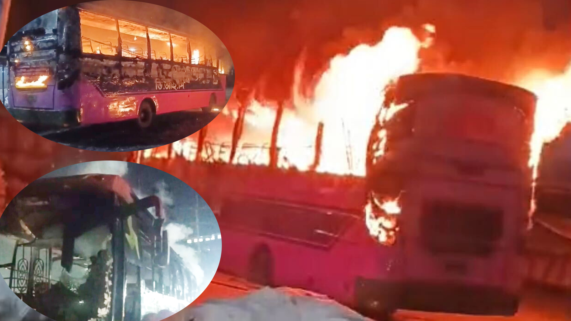 গাজীপুরে এক রাতে তিনটি যাত্রীবাহী বাসে আগুন দিলো দুর্বৃত্তরা