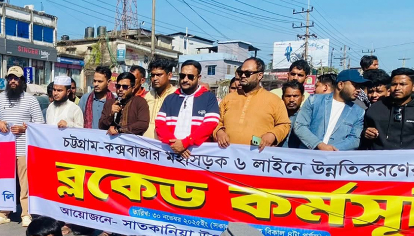 চট্টগ্রাম, ৩০ নভেম্বর – চট্টগ্রাম-কক্সবাজার মহাসড়ক ছয় লেনে উন্নীত করার দাবিতে একাধিক স্থানে অবরোধ করা হয়েছে। পূর্ব নির্ধারিত কর্মসূচির অংশ হিসেবে আজ রোববার সকাল থেকে চট্টগ্রাম জেলার লোহাগাড়া, সাতকানিয়া ও কক্সবাজারের চকরিয়া এলাকায় এই কর্মসূচি পালিত হচ্ছে। ‘চট্টগ্রাম-কক্সবাজার মহাসড়ক উন্নয়ন আন্দোলন’ নামের একটি সংগঠনের ব্যানারে চলছে মহাসড়ক অবরোধ।