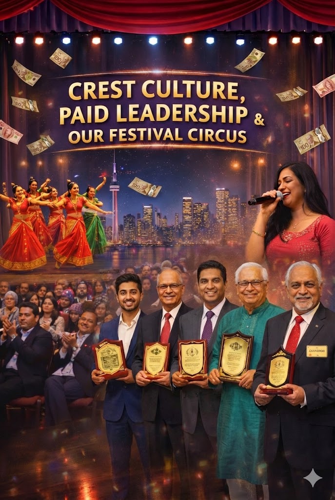 এদিকে টরন্টোতে বইছে ‘ক্রেস্ট সংস্কৃতি’র জোয়ার। ঘরে ঘরে এখন ক্রেস্ট আর পদকের ছড়াছড়ি। দেয়ালে, আলমারিতে, অফিসের টেবিলে। সাংবাদিকতার ভাষায় একে বলা যায় ‘ডোনেশন ইন এক্সচেঞ্জ ফর অ্যাপ্রিসিয়েশন’। কেউ কেউ একা বসে এই ‘ক্রয়কৃত সম্মান’-এর সংখ্যা গুনে তৃপ্তির ঢেউ তোলেন। স্ত্রী হয়তো বিরক্ত হয়ে বলেন, “শুধু শুধু টাকা নষ্ট করে এই কাঁচের টুকরা ঘরে আনছো কেন?” সন্তান বলে, “বাবা এগুলো তো তোমার অর্জন নয়, পয়সা দিয়ে কেনা।”। কিন্তু পদকধারী অবজ্ঞার হাসিতে বলেন, “তোমরা এসব বুঝবা না”। আসলেই তো, কয়জনই বা বোঝে এই আভিজাত্যের লড়াই?