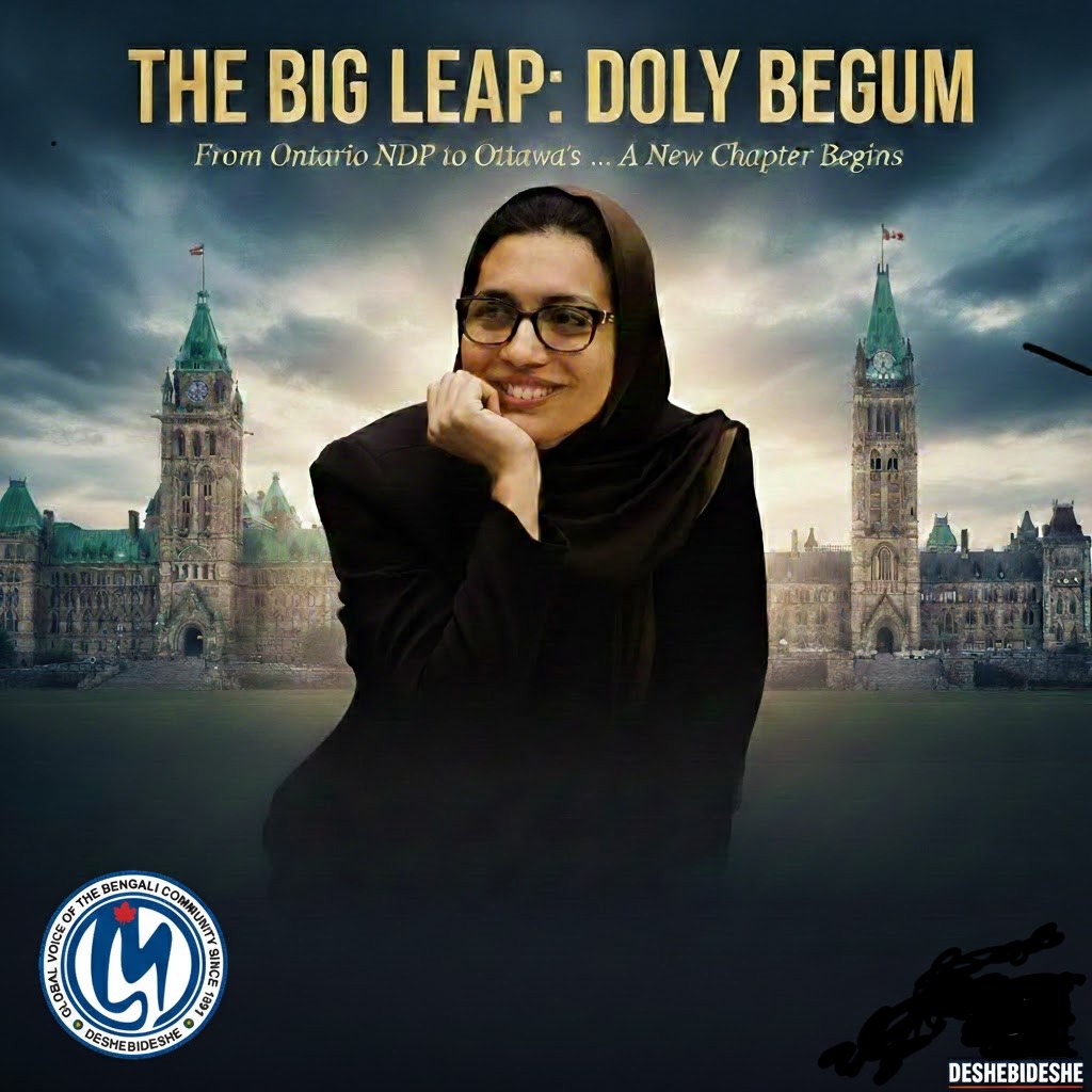 কুইন্স পার্ক থেকে অটোয়ার পার্লামেন্ট হিলের পথে ডলি বেগমের এই ঐতিহাসিক যাত্রা আমাদের জন্য গর্বের। তাঁর নতুন রাজনৈতিক সিদ্ধান্তকে আমরা স্বাগত জানাই। আমরা বিশ্বাস করি, ফেডারেল পর্যায়ে তাঁর বলিষ্ঠ কণ্ঠস্বর আরও কার্যকরভাবে জনস্বার্থের পক্ষে ভূমিকা রাখবে। ‘দেশে বিদেশে’ পরিবারের পক্ষ থেকে ডলি বেগমের এই নতুন অধ্যায়ের জন্য রইল আন্তরিক শুভকামনা।