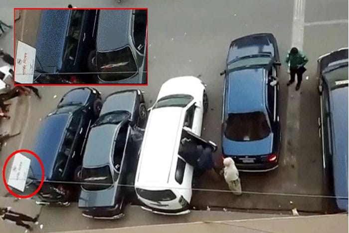 ‘পার্কিং নিষেধ’ লেখা সাইনবোর্ডের নিচেই গাড়ির সারি
