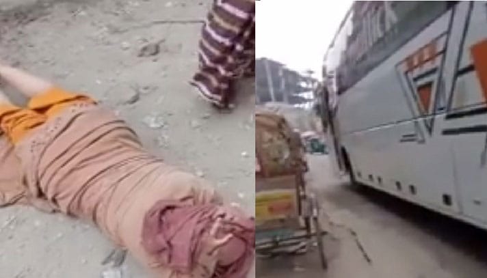 সামাজিক যোগাযোগমাধ্যমে ছড়িয়ে পড়া ভিডিও চিত্রে দেখা যায়, সেদিন সকাল পৌনে নয়টার দিকে এন মল্লিক নামের একটি বাস থেকে ছুড়ে ফেলা হয় বোরকা পরা ওই নারীকে। মাটিতে পড়ে তিনি অস্ফুট স্বরে গোঙাচ্ছিলেন। পরে স্থানীয় লোকজন গিয়ে তাঁকে মাটি থেকে তোলেন। ভিডিও চিত্রেই দেখা যায়, গাড়ির নম্বর ঢাকা মেট্রো ব-১৩-১৫২১। এন মল্লিক বাসটি গুলিস্তান-নবাবগঞ্জ রুটে চলাচল করে।