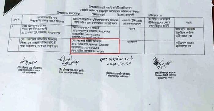 যাচাই-বাছাইয়ে চার সদস্যবিশিষ্ট কমিটিতে ছিলেন জাতীয় মুক্তিযোদ্ধা কাউন্সিলের (জামুকা) চেয়ারম্যান মনোনীত সভাপতি উপজেলা মুক্তিযোদ্ধা সংসদের সাবেক কমান্ডার বাদউজ্জামান বদি, স্থানীয় সংসদ সদস্যের মনোনীত সদস্য বীর মুক্তিযোদ্ধা গোলাম নূরানী আলাল, জেলা প্রশাসকের মনোনীত সদস্য সাবেক কমান্ডার বীর মুক্তিযোদ্ধা মহসীন আলী সরদার ও সদস্য সচিব উপজেলা নির্বাহী কর্মকর্তা মিজানুর রহমান মিলন।