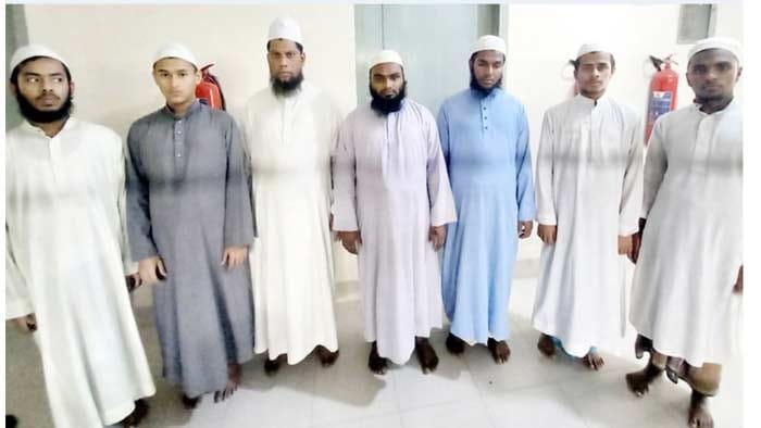 গ্রেফতারকৃত আসামিরা হলেন, মাদ্রাসার শিক্ষক চাঁদপুর জেলার মতলব দক্ষিণ থানার মধুপুর এলাকার নূরুল ইসলাম মিয়াজির ছেলে শামীম, ময়মনসিংহ জেলার ফুলপুর থানার ইমাদপুর এলাকার আলাউদ্দিনের ছেলে মাহমুদুল হাসান, ঢাকার গেন্ডারিয়া থানার শাখারিনগর এলাকার মোজাম্মেল হকের ছেলে আবু তালহা, মাদ্রাসার ছাত্র, নারায়ণগঞ্জের বন্দর থানার উত্তর লক্ষণখোলা এলাকার আবুল কালামের ছেলে আবু বক্কর, ময়মনসিংহ জেলার পাগলা থানার কাজা গ্রামের সিরাজুল ইসলামের ছেলে শওকত হোসেন সুমন, একই জেলার ফুলপুর থানার ইমাদপুর গ্রামের মৃত আলাউদ্দিনের ছেলে জুবায়ের আহমেদ ও চাঁদাপুর জেলার ফরিদগঞ্জ থানার ভাটিরগাঁও গ্রামের মৃত. তমসির মিয়ার ছেলে আাব্দুল আজিজ।