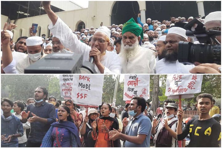 এদিকে, বাংলাদেশের স্বাধীনতার সুবর্ণজয়ন্তীর অনুষ্ঠানে ভারতের প্রধানমন্ত্রী নরেন্দ্র মোদির আগমনের প্রতিবাদে ঢাকা বিশ্ববিদ্যালয়ের টিএসসি থেকে মিছিল শুরু করেছে প্রগতিশীল ছাত্রজোট। কাঁটাবন হয়ে মিছিলটি শাহবাগে গিয়ে সেখানে অবস্থান নেওয়ার কথা। পূর্বঘোষিত কর্মসূচি অনুযায়ী শুক্রবার (১৯ মার্চ) এ বিক্ষোভ মিছিল রাজু ভাস্কর্যে অনুষ্ঠিত হওয়ার কথা থাকলেও ভাস্কর্যের পাদদেশে আগে থেকেই ছাত্রলীগ অবস্থান নেওয়ায় সমাবেশস্থল পরিবর্তন করেছে প্রগতিশীল ছাত্রসংগঠনগুলো।