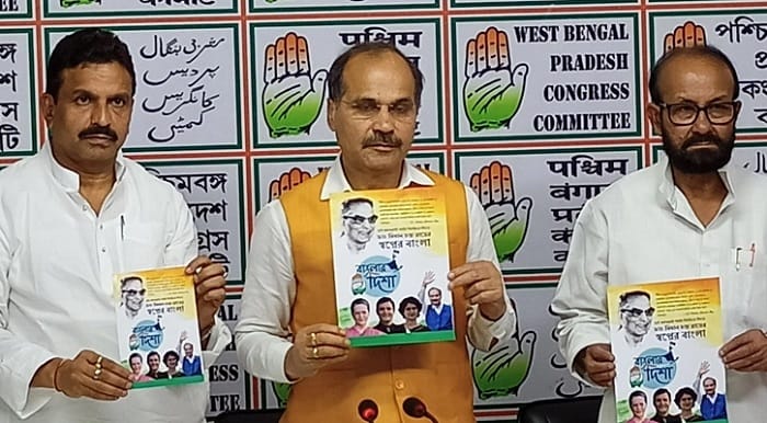 কলকাতা, ২২ মার্চ – ‘এবার আর ভুল নয়, আর কোনো ফুল নয়’ এমনই বার্তা দিয়ে সোমবার (২২ মার্চ) কলকাতার প্রদেশ কংগ্রেসের দপ্তর থেকে কংগ্রেসের ইশতেহার প্রকাশ করলেন রাজ্য সভাপতি অধীর রঞ্জন চৌধুরী। শুধু বার্তা নয় কংগ্রেসের ইশতেহারের প্রথম প্রচ্ছদে এমন স্লোগান জায়গা পেয়েছে।