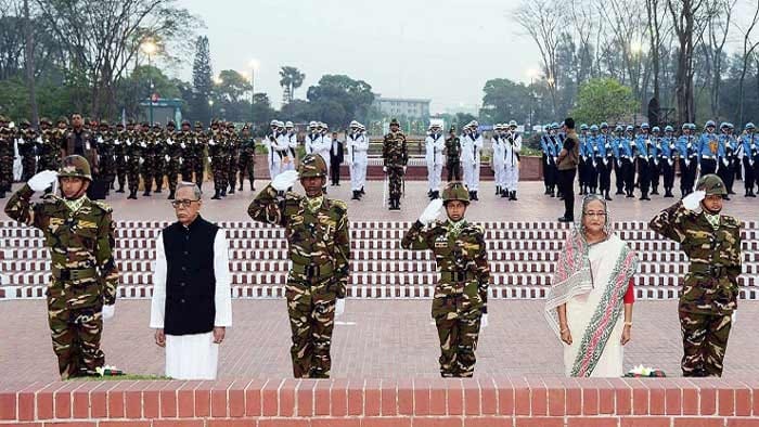 ঢাকা, ২৬ মার্চ – জাতীয় স্মৃতিসৌধে শহীদ মুক্তিযোদ্ধাদের প্রতি শ্রদ্ধা জানিয়েছেন রাষ্ট্রপতি মো. আবদুল হামিদ ও প্রধানমন্ত্রী শেখ হাসিনা।