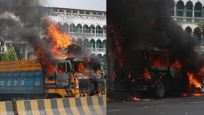 আগুন দেয়ার পর পুরো এলাকায় আতঙ্ক ছড়িয়ে পড়ে এবং যান চলাচল বন্ধ হয়ে যায়।