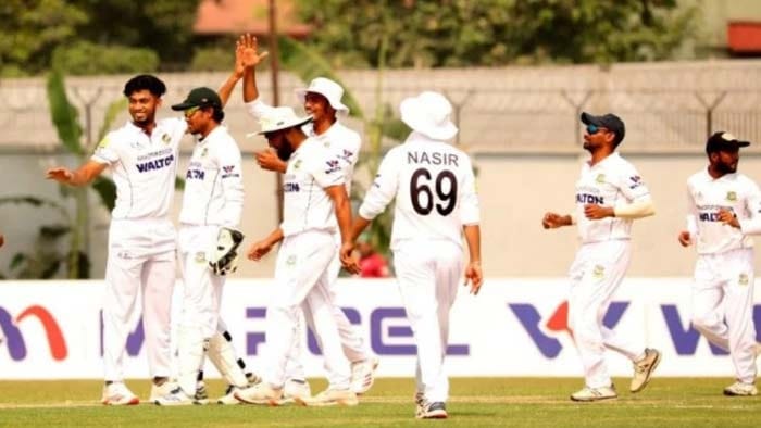ঢাকা, ২৯ মার্চ – জাতীয় ক্রিকেট লিগের দ্বিতীয় রাউন্ডের প্রথম দিনে আজ বল হাতে রংপুর বিভাগকে চালকের আসনে বসিয়েছেন পেসার মুকিদুল ইসলাম মুগ্ধ। টপ অর্ডারের চার ব্যাটসম্যানসহ মোট ৬টি উইকেট তুলে নিয়ে প্রতিপক্ষকে প্রায় একাই ধসিয়ে দিয়েছেন মুকিদুল। তবে তুষারের শতকে ২২১ রানে পৌঁছতে সক্ষম হয় খুলনা।