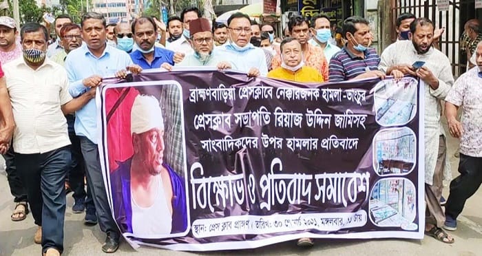 ব্রাহ্মণবাড়িয়া প্রেসক্লাব চত্বর থেকে সাংবাদিকেরা বিক্ষোভ মিছিল বের করেন। মিছিলটি শহরের প্রধান প্রধান সড়ক প্রদক্ষিণ করে প্রেসক্লাব চত্বরে প্রতিবাদ সমাবেশে মিলিত হয়।