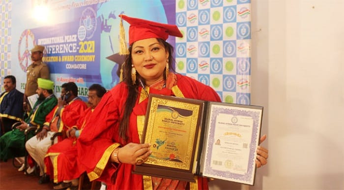 যে কারণে তারা বিশেষ অনুষ্ঠানের মাধ্যমে শনিবার ‘ডক্টর অব মিউজিক’ পদক প্রদান করে। এটি দেন বিশ্ববিদ্যালয়টির প্রতিষ্ঠাতা ও চেয়ারম্যান ড. পি. ম্যানুয়েল। এর ফলে বহু সম্মানে ভূষিত এ শিল্পী প্রথমবারের মতো ডক্টরেট ডিগ্রি পেলেন।