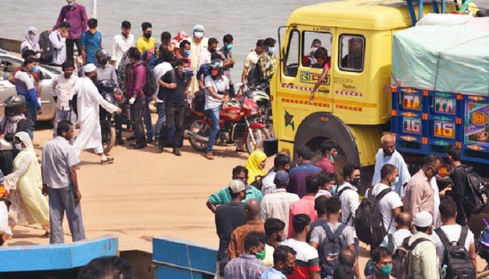 বেসরকারি প্রতিষ্ঠানে কর্মরত নয়ন মোল্লার বলেন, গাজীপুর থেকে ৬টায় রওনা দিয়ে পথে কয়েকবার তাকে গাড়ি বদলাতে হয়েছে। তিনবার গাড়ি বদলানোর পর গাদাগাদি করে ফেরি পার হতে পেরেছেন।