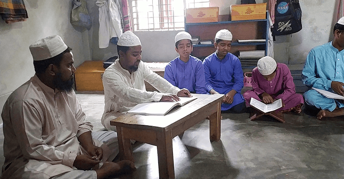 দৃষ্টিহীন শিক্ষক কোরআন শেখাচ্ছেন দৃষ্টিহীন শিক্ষার্থীদের