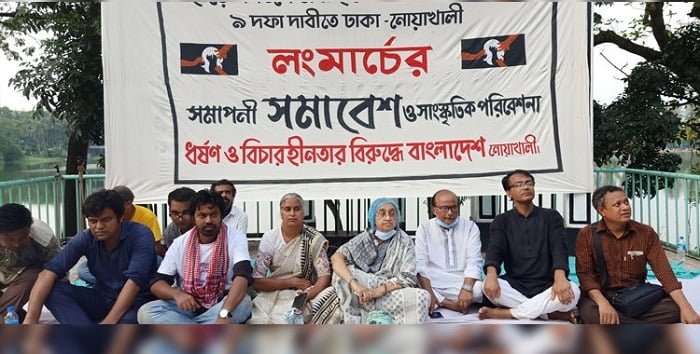নোয়াখালী, ১৮ অক্টোবর- দেশব্যাপী অব্যাহত ধর্ষণ ও বিচারহীনতার বিরুদ্ধে ৯ দফা দাবিতে ঢাকা-নোয়াখালী লংমার্চের সমাপনী সমাবেশে বক্তারা বলেছেন, এ সরকার ধর্ষকদের লালন করে যাচ্ছে। যারা ধর্ষকদের লালন-পালন করছে তাদের বিচার চাই। আমাদের শান্তিপূর্ণ লংমার্চে ফেনীসহ চারস্থানে সরকারদলীয় সন্ত্রাসীরা হামলা করেছে। আমাদের কত আর মারবেন? এদেশের তরুণরা লড়াই করে যাবে। আমাদের আন্দোলন চলবে।