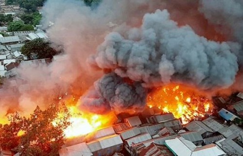 পুড়ে গিয়েছে মহাখালীর সাততলা বস্তির কয়েকশ’ ঘর