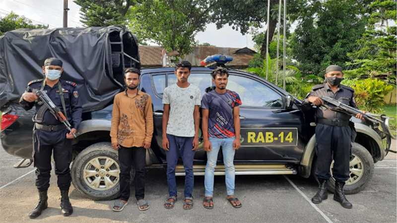 গ্রেফতারকৃতরা নোয়াখালীর সোনাইমুড়ির শহিদুল্লাহর ছেলে সাইফুল ইসলাম রাসেল, নরসিংদীর নাগরিয়াকান্দির মৃত নিজাম উদ্দিনের ছেলে সাগর মিয়া ও ঢাকার দক্ষিণ খান এলাকার হেলাল উদ্দিনের ছেলে নাহিন উদ্দিন।