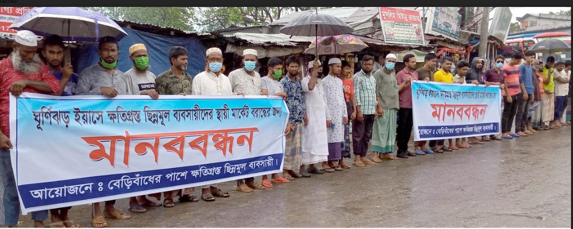 কুয়াকাটায় ক্ষতিগ্রস্ত ব্যবসায়ীদের পুনর্বাসনের দাবিতে মানববন্ধন