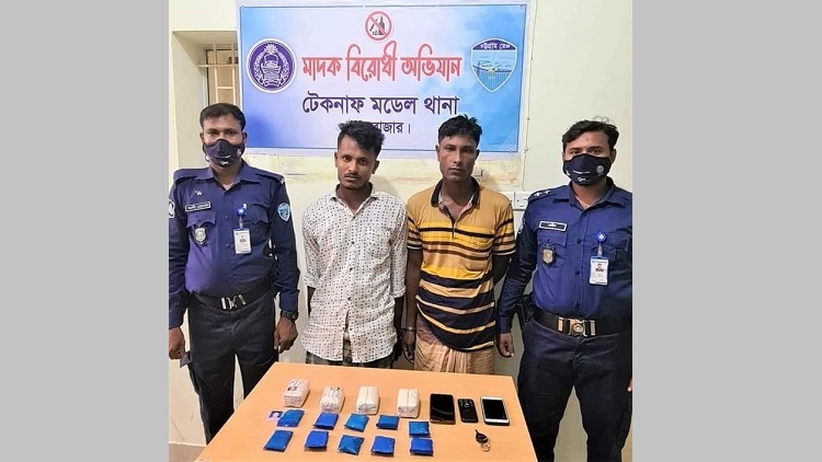আটককৃতরা হলেন- টেকনাফের বড় হাবিব পাড়ার মৃত আবদুল মুনাফের ছেলে মো. শাকের (২৮) ও মো. আমিনের ছেলে মো. কেফায়েত উল্লাহ (২২)।