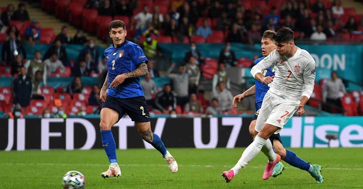 টাইব্রেকার রোমাঞ্চের মূল ম্যাচের ৬০ মিনিটের সময় প্রথম গোলটি করে ইতালি। সিরো ইম্মোবিলের পাস থেকে দলকে আনন্দে ভাসান ফেডরিক কিয়েসা। এর ঠিক ২০ মিনিট পর দানি ওলমোর এসিস্টে গোল করেন আলভারো মোরাতা। পরে টাইব্রেকারে গিয়ে এ দুজনই মিস করেন নিজেদের শট। যার মাশুল দিয়ে হারতে হয়েছে ম্যাচ।