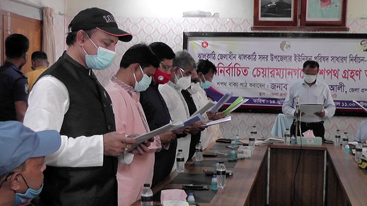 শপথ নিলেন ঝালকাঠির ৯ ইউপি চেয়ারম্যান