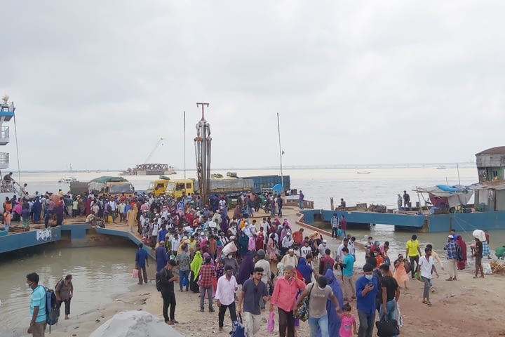 লকডাউন তুলে নেয়ায় পাটুরিয়ায় ফেরি ও লঞ্চঘাটে যাত্রীদের চাপ বেড়েছে