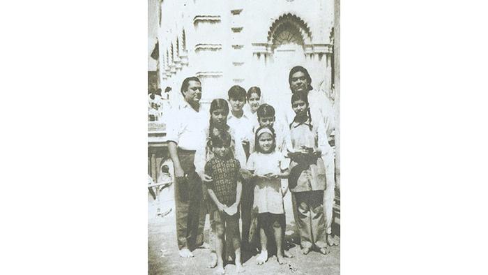 কলকাতার রাজভবনে…বাঁ দিক থেকে কাজী অনিরুদ্ধ, শেখ্ মুজিবুর রহমান, কল্যাণী কাজী ও কাজী সব্যসাচী