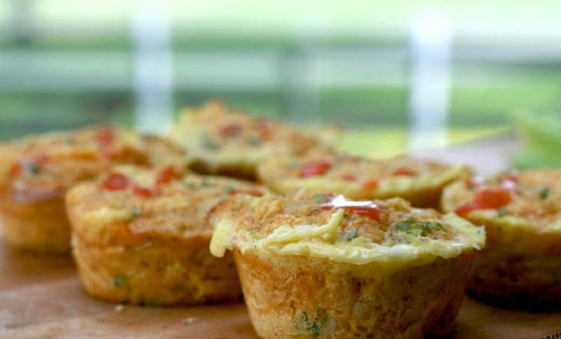 ৬। মাফিনের উপরে টমেটো কুচি এবং পনির কুচি দিয়ে দিন।